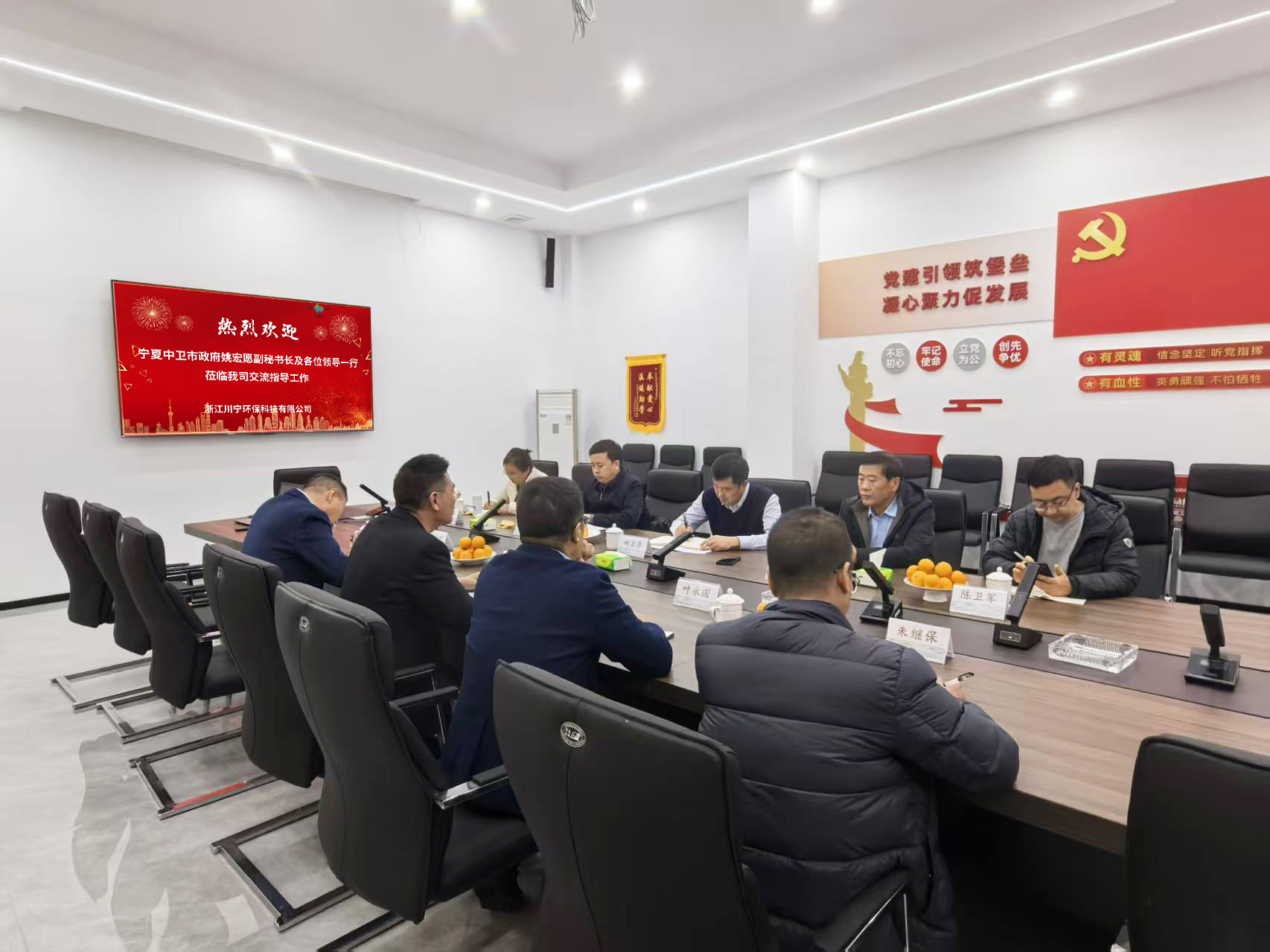 2025年12月10日,由寧夏中衛(wèi)市政府副秘書長姚宏愿帶隊,工業(yè)園區(qū)黨工委委員李廣強,市生態(tài)環(huán)境局副局長李玉明,市財政局調研員李衍萍,工業(yè)園區(qū)管委會財政金融局局長陳衛(wèi)軍,工業(yè)園區(qū)管委會綜合服務局干部馬紅霞等組成的政府考察團,專程蒞臨我司進行考察調研。此行旨在深入了解我司在環(huán)??萍碱I域的創(chuàng)新成果與運營模式,共商合作大計,共繪發(fā)展藍圖。我司總經理邵永富攜核心管理團隊熱情接待,雙方舉行了座談交流會。